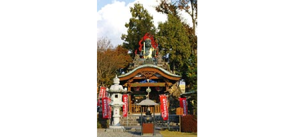 参道をまっすぐ進むと、正面に護摩堂があり、その上に、露座の不動明王像どっしりと座す。これこそがまさしく寺のシンボルであろう。 護摩堂を前に、目を左にやると、端正な“容姿”の本堂が堅固な構えを見せる。